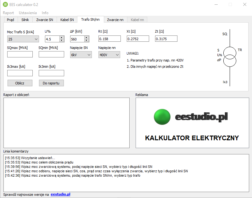 Udostępniono pierwszą wersję kalkulatora wielkości elektrycznych EES calculator w wersji 0.1